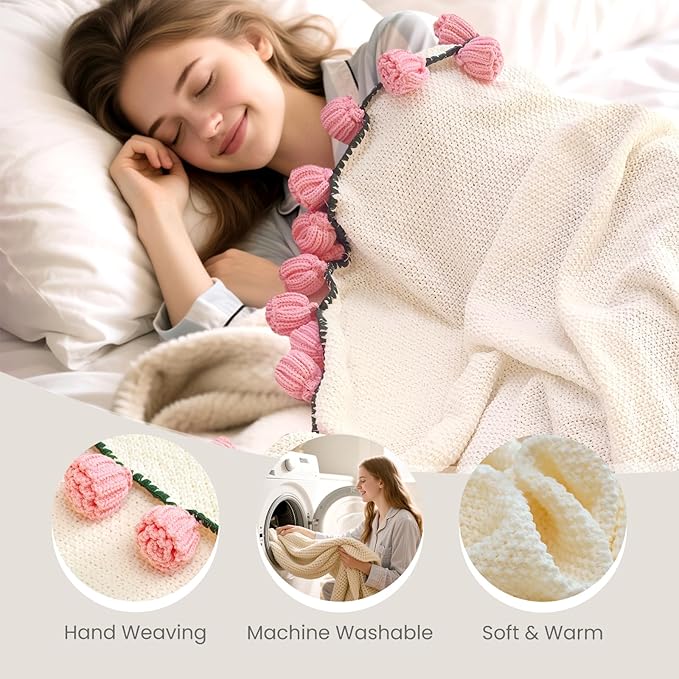 - Bouquet Blanket Design: Flower throw blanket transforms from a cozy blanket to a beautiful bouquet when rolled up.Whether it is used as a decorative blanket, a decoration for special occasions, or a cozy blanket for daily use, this hand knitted rose blanket is perfect for adding charm and warmth to your space.