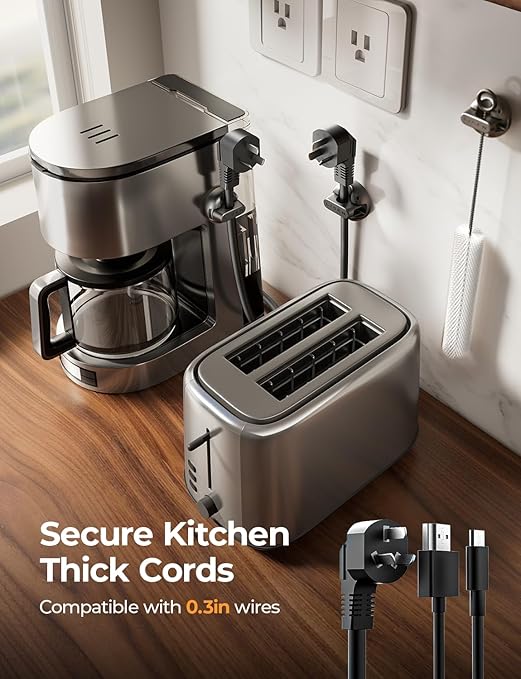 - 【Perfect Slot Size for Wide Cable Compatibility】: With a 0.27-inch (7mm) slot diameter, this versatile cord holders for nightstand, also referred to as desk cable clips, works perfectly with phone chargers, USB cords, HDMI cables, power cords, and slim cables like the iPhone silicone charging cord. Enjoy smooth cable pulling and a clutter-free space.