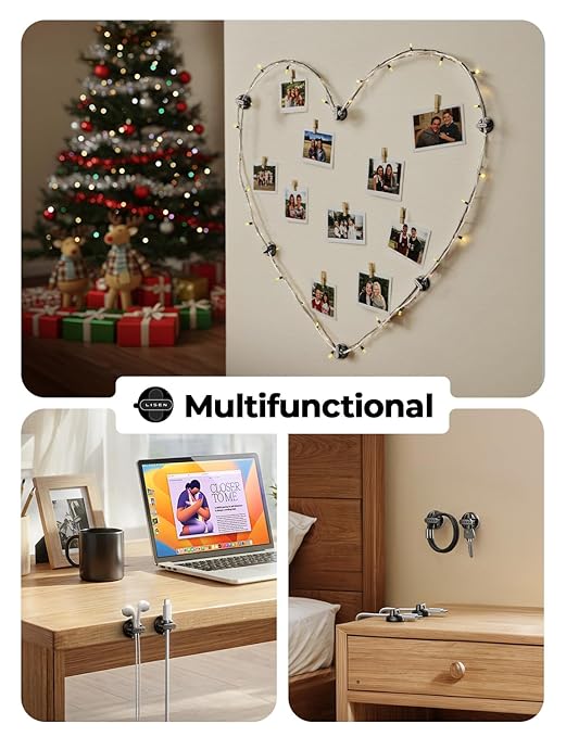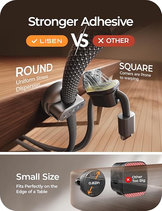 - 【2025 Minimize Space】: Measuring just 0.85" x 0.85" x 0.55" and weighing only 3g, 28% smaller than others. LISEN cold holder is perfect for narrow spaces. With 10 individual clips included, you can neatly arrange cables on desks, nightstands, walls, or in your car. This versatile organizer with slick design is a must-have accessory for keeping your space clean and clutter-free.