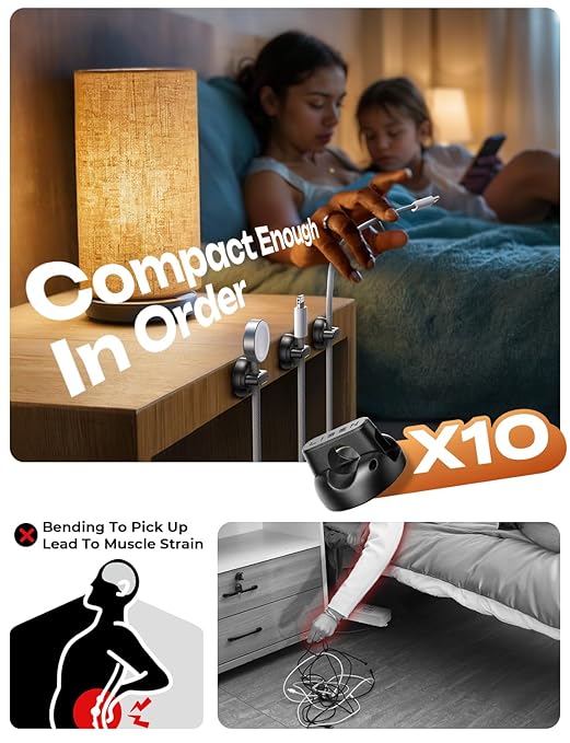 - 【Cable Clips for Easy One-Handed Use】: LISEN magnetic cable holder offer a unique magnetic opening and closing mechanism, making it easy to place or remove cables with just one hand. Unlike ordinary cord holders, the 60° rotating shaft and magnetic locking system allow you to quickly grab or add a cord in seconds, ensuring convenience and efficiency.