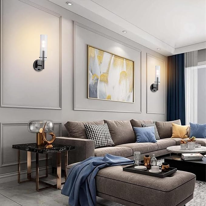 - 【Clear Striped Glass Shades Wall Sconce】Using classic thickened clear glass material lampshades, this cylinder shape with striped design which provide excellent light transmission to illuminate various spaces in your home, brings a touch of vitality and energy to the indoor space,Perfect for mid-century decoration styles and combines the contemporary and vintage style .
