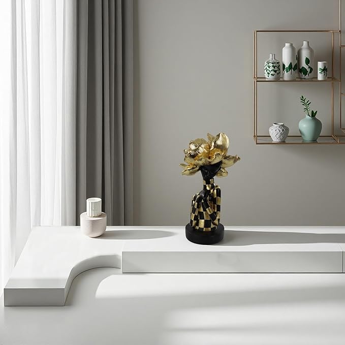 - 【African modern statue】The statue uses modern aesthetic design, high-quality resin materials, handmade, unique lines and size, and the flower crown on the head is lifelike and full of artistic atmosphere.