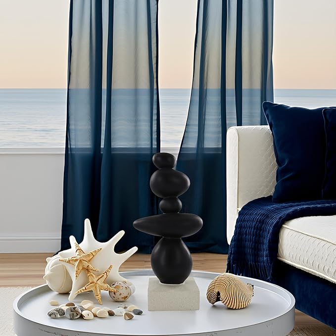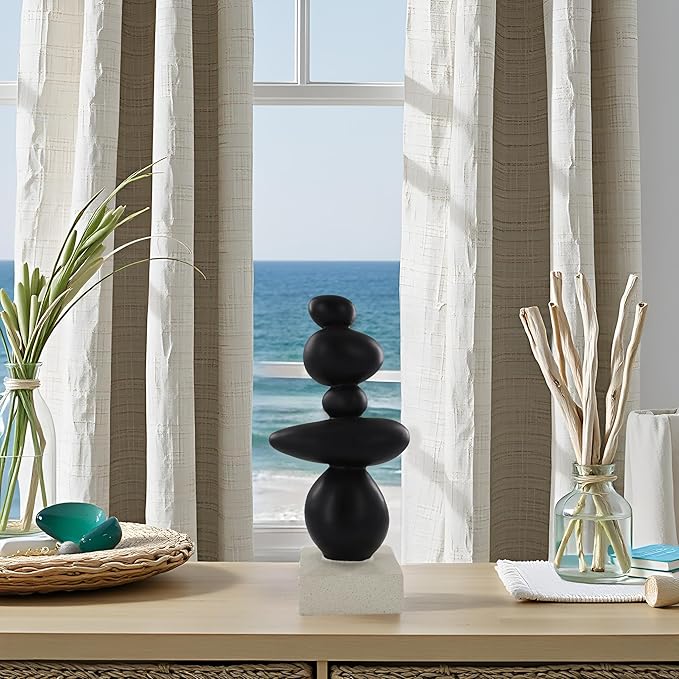 13'' Abstract Rock Decorative Sculpture Ornament, Sandstone Statue Decor for Living Room, Modern Resin Stone Sculpture,Coffee Table Decoration,Gifts for Good Luck, Health, Strength,Black