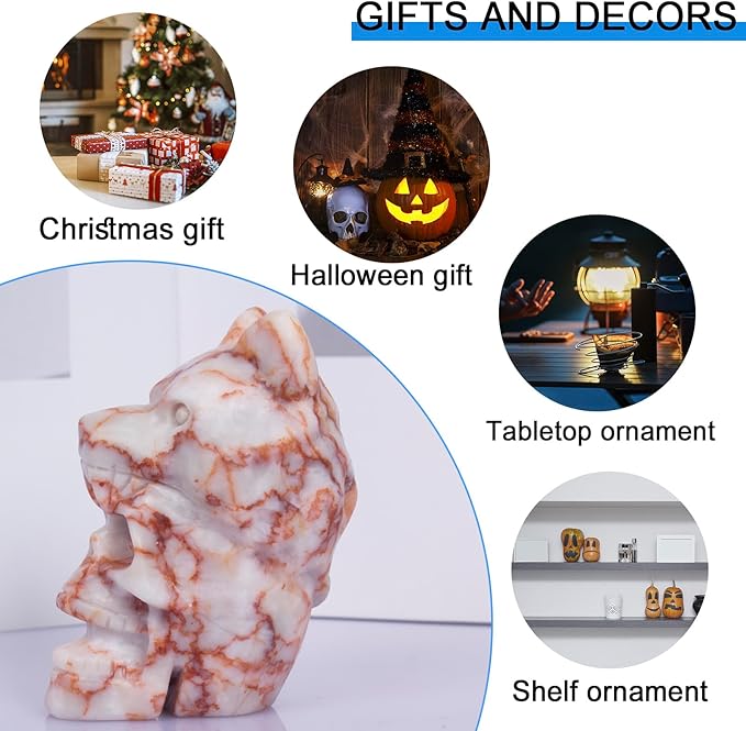- 【Ideal Gifts】:The crystal skull with wolf head statue is both cool and rich in meaning. So it’s a great gift for family, friends and skull with wolf head lovers. It’s also a good choice for birthdays, Halloween, Christmas, and other holidays. It is also an ideal choice for crystal enthusiasts and beginners.