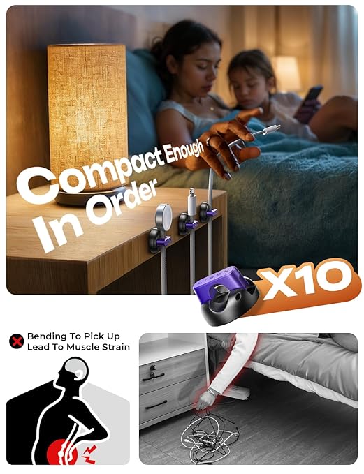 - Cable Clips for Easy One-Handed Use: LISEN magnetic cable holder offer a unique magnetic opening and closing mechanism, making it easy to place or remove cables with just one hand. Unlike ordinary cord holders, the 60° rotating shaft and magnetic locking system allow you to quickly grab or add a cord in seconds, ensuring convenience and efficiency