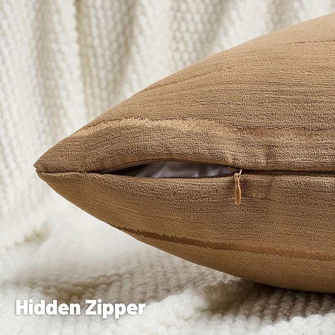 FUTEI Bronze Chenille Decorative Throw Pillow Covers 12x20 Inch Set of 2,Soft Embossed Striped Textured Lumbar Pillow Cases,Modern Home Decor for Couch Bed Living Room