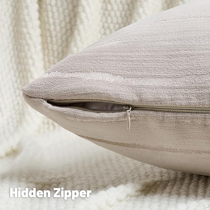 FUTEI Beige Chenille Decorative Throw Pillow Covers 18x18 Inch Set of 2,Soft Embossed Striped Textured Cushion Case,Modern Home Decor for Couch Bed Living Room