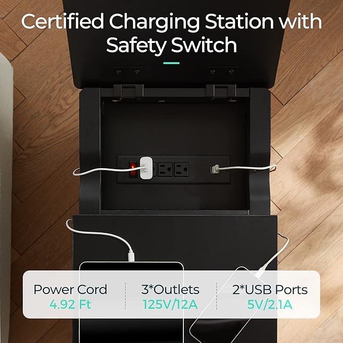 - Upgraded End Table with Charging Station – Built for modern convenience, this end table features 2 USB ports and 3 AC outlets, letting you charge up to 5 devices at once. From your phone and laptop to a desk lamp or tablet, everything stays powered. The 6.5-foot power cord offers flexible placement anywhere in your home