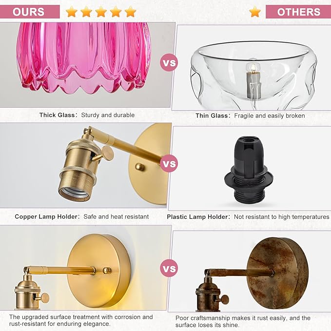 - 【Safe For Use】Product safety is our top priority. Our bedside wall lamps feature copper lamp holders that withstand high temperatures from prolonged bulb operation, leveraging copper's exceptional heat resistance. Furthermore, the holders of this sconces wall lighting are rigorously UL-certified, ensuring complete safety compliance