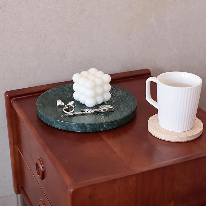 - Ideal Size and Easy to Clean:The Diameter of this decorative tray is 8 inches, not small and not large, This vanity tray jewelry tray can be placed in the bathroom washstand, living room, coffee table, bedroom dressing table, etc.This stone tray is easy to maintain and can be wiped directly with a damp cloth or paper towel.