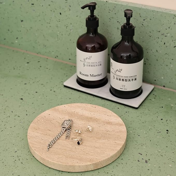 - Ideal Size and Easy to Clean:The Diameter of this decorative tray is 8 inches, not small and not large, This vanity tray jewelry tray can be placed in the bathroom washstand, living room, coffee table, bedroom dressing table, etc.This stone tray is easy to maintain and can be wiped directly with a damp cloth or paper towel.