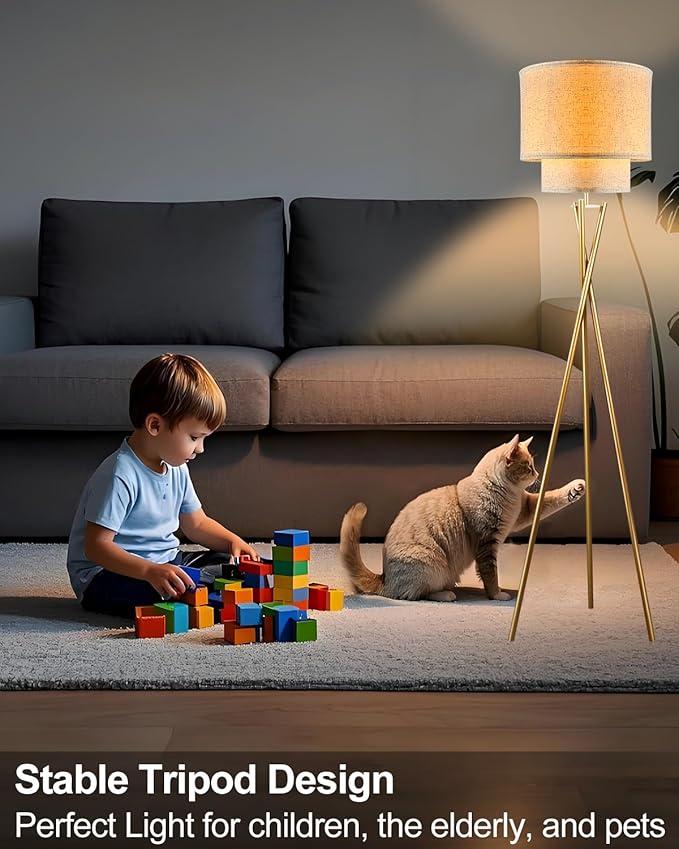 - Stable Design😊Made of high-quality metal, this tripod floor lamp for living room boasts exceptional durability. Its tripod structure ensures stability even on carpets, making it safe for homes with kids, elders, or pets. Perfect as a tall lamp for living room beside the sofa or near the bed, it’s one of the most reliable tripod lamps for daily use.​