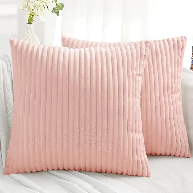 Simmore Decorative Fall Throw Pillow Covers 20x20 Set of 2, Soft Plush Flannel Double-Sided Fluffy Couch Pillow Covers for Sofa Living Room, Pink