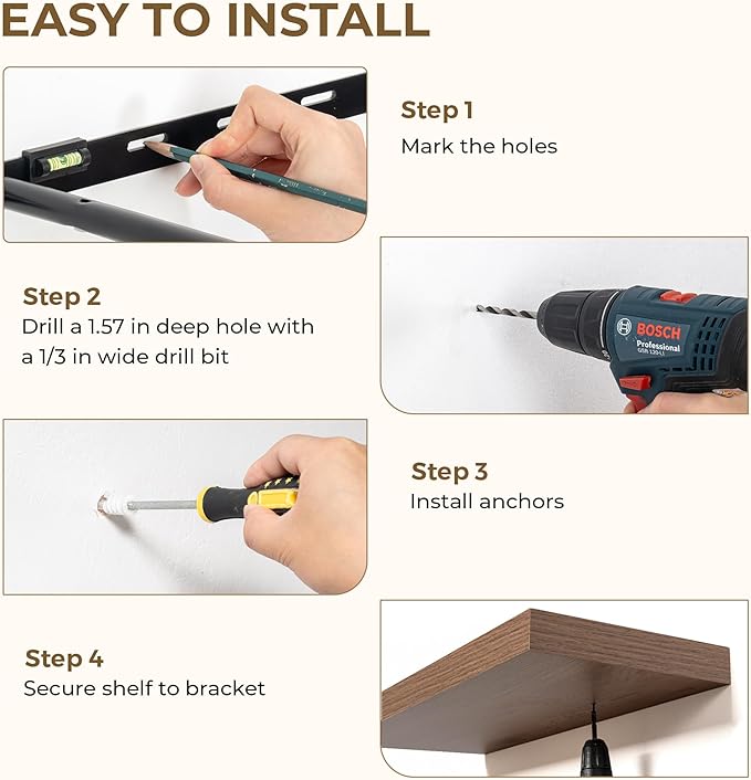 - Sturdy & Secure design: These 32-inch floating shelves feature a durable, concealed mounting bracket that offers reliable support for your belongings. Engineered for hassle-free and stable installation, each shelf includes all the required hardware to ensure a strong, wobble-free hold—perfect for showcasing your favorite decor, photos, or everyday items with confidence and style.