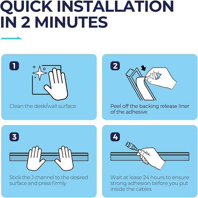 - Traceless Installation Experience: Our J channel wire organizers for cords features a high strength self adhesive backing that simplifies the installation process, eliminating the need for drilling or additional tools, the easy to remove nature of our desk cable management kit allows you to adjust the position of cord organizer for desk or clean the area without leaving any residue