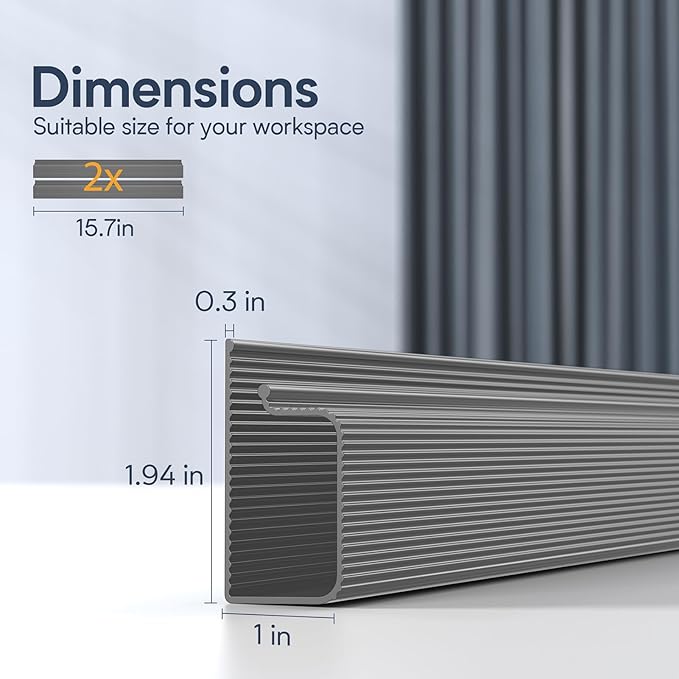 Delamu 2 Pack 15.7in Under Desk Cable Management, 2 Pack Safe Tidy Cable Management Under Desks for Home Office, Cord Organizer for Desk, Wire Organizer Kit, Grey