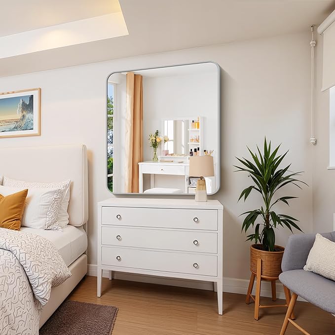 - Elegant Rounded Corners & Premium Safety: Featuring a sleek silver metal frame with softly contoured rounded corners. This sophisticated design combines modern elegance with enhanced safety, eliminating sharp edges while adding a luxe minimalist finish. The rich black frame elevates any decor, creating a visually expansive effect that brightens spaces and amplifies the sense of openness.