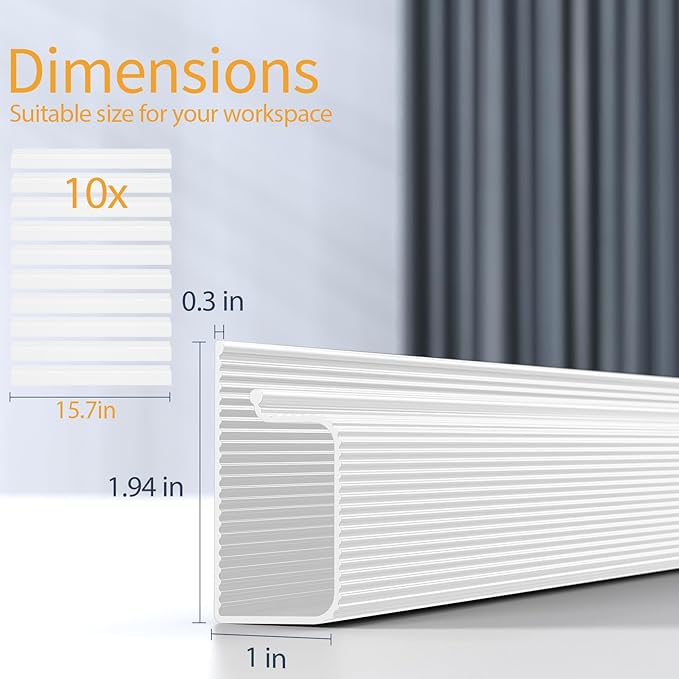 - Generous Capacity & Reliable Safety: The under deskcord management are large enough to accommodate at least 10 cables, meeting most wire management under the desk organizer needs. The use of PVC plastic material ensures excellent safety performance. Our desk cable management does not produce open flame at high temperatures, only presenting a charred surface, which greatly enhances the safety features of our cable raceway.