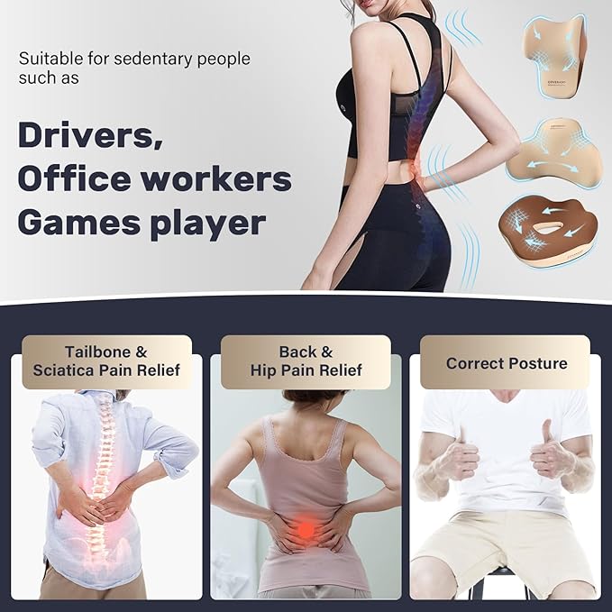 - Sitting Comfort & Relive Pressure: Our driver's seat cushion and lumbar support headrest pillow are made of high-density, slow-rebound memory sponges, ensures strong support. The car back support can absorb and relieve stress on your body. The cushions can relieve your hip pain and sciatica. Making it perfect for when you're in the car or taking a break at home
