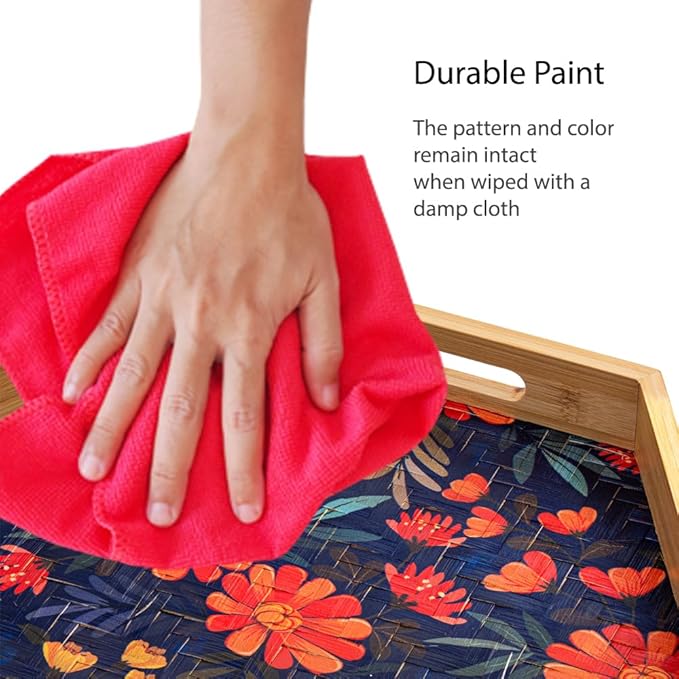 PEMAR 15.7" Hexagonal Bamboo Tray for Serving Coffee, Breakfast, Bread, Food, Art Decor. Decorative Pattern Tray for Coffee Table, Kitchen Counter, Vanity, Bedroom, Ottoman, Home Decor (Flowers)