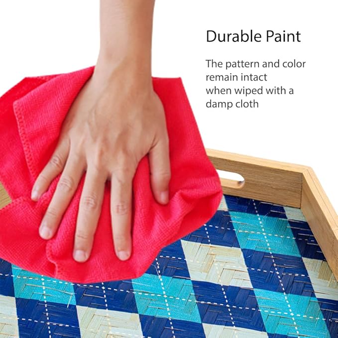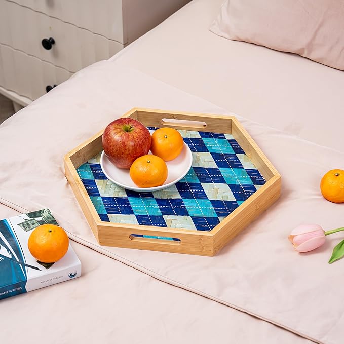 PEMAR 15.7" Hexagonal Bamboo Tray for Serving Coffee, Breakfast, Bread, Food, Art Decor. Decorative Pattern Tray for Coffee Table, Kitchen Counter, Vanity, Bedroom, Ottoman, Home Decor (Argyle)