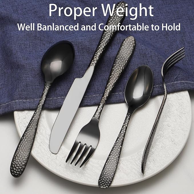 - Modern Hammered Design: Cutlery handles have a double-sided hammered texture. We use advanced technology to create a more three-dimensional texture on the handles, making them easier to grip and suitable for all ages.