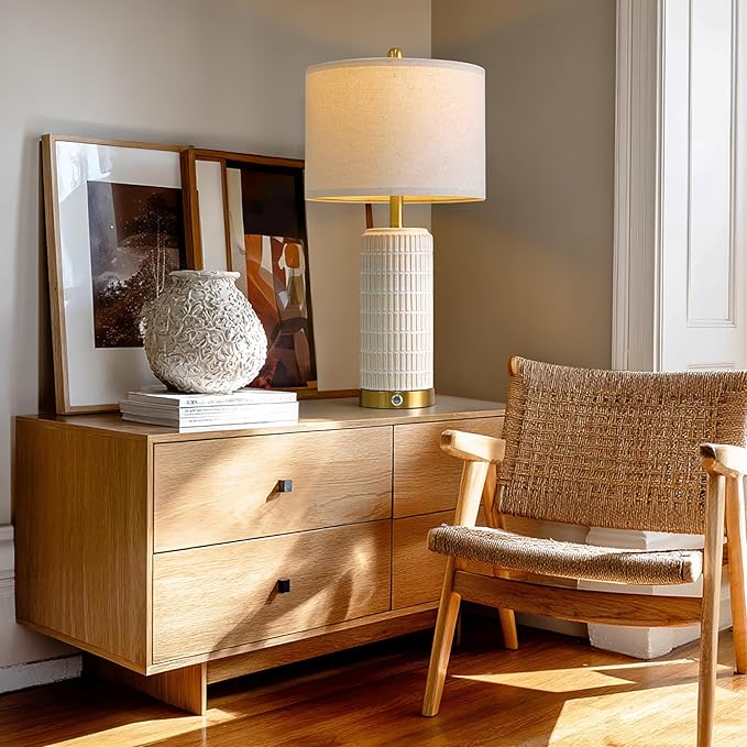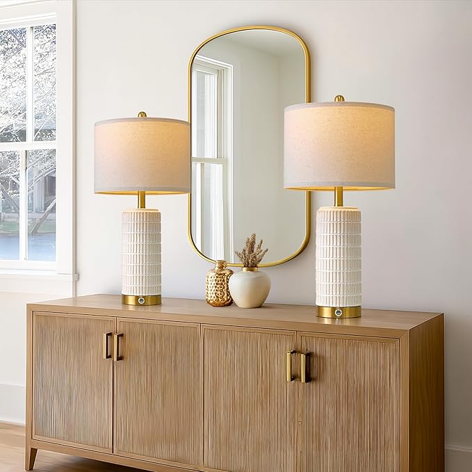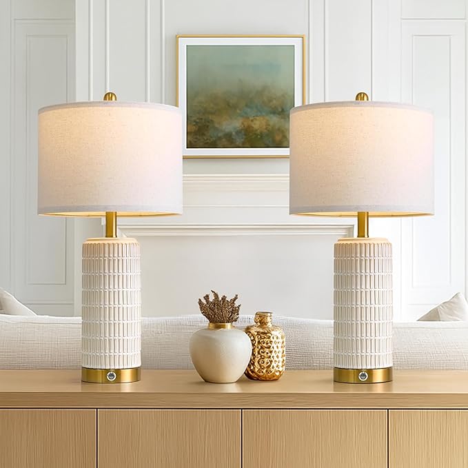 - Ideal Present Option: Elevate your house decor with PoKat ceramic lamps set of 2, which also serves as a perfect decorative piece. This farmhouse lamps's modern design add character and warmth to any space, creating a chic and inviting ambiance. Whether placed on nightstands or bedside in bedrooms, hallway, end table,side table, console table in living rooms, home office, guest room or nursery room, this table lamp for bedroom enhances the overall aesthetic. This bedroom lamps makes an ideal gift for housewarming, birthday and wedding to friends, wife, women, mother, grandmother and men.