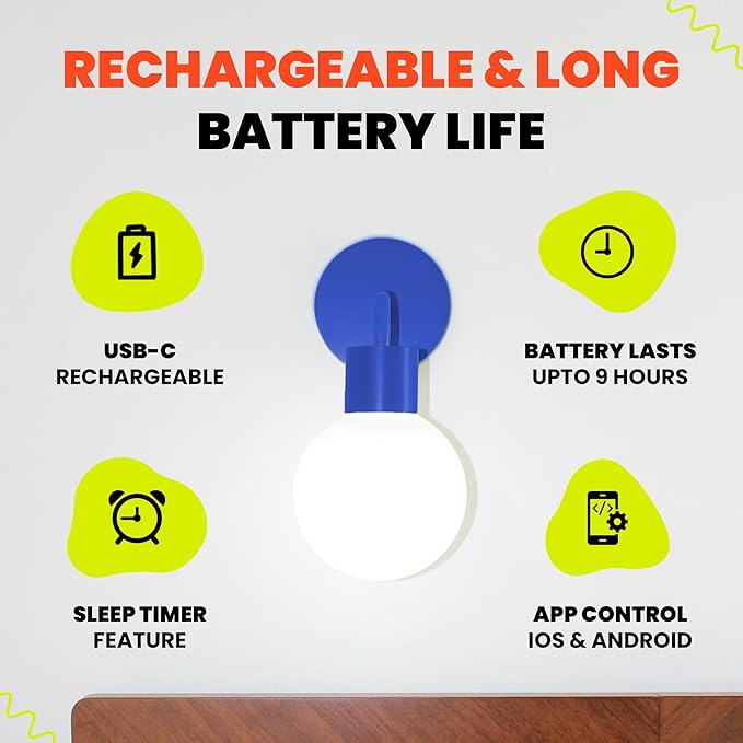 - Eco-Friendly Rechargeable Battery | Featuring a USB-C rechargeable battery, Poplight offers sustainable lighting without the hassle of frequent battery replacements.