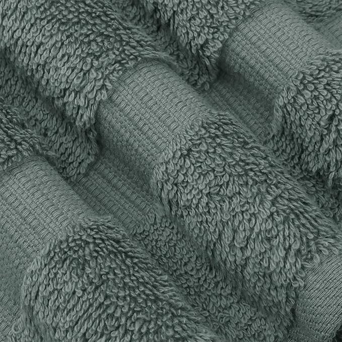 - HIGH-QUALITY TOWELS: These towels are crafted in Turkey with quality cotton that makes them absorbent, soft, and fluffy. These towels fluff up after the first wash, which allows you to feel spa grandeur in the comfort of your own home. The double-stitched hem and natural weave guarantee durability and strength.