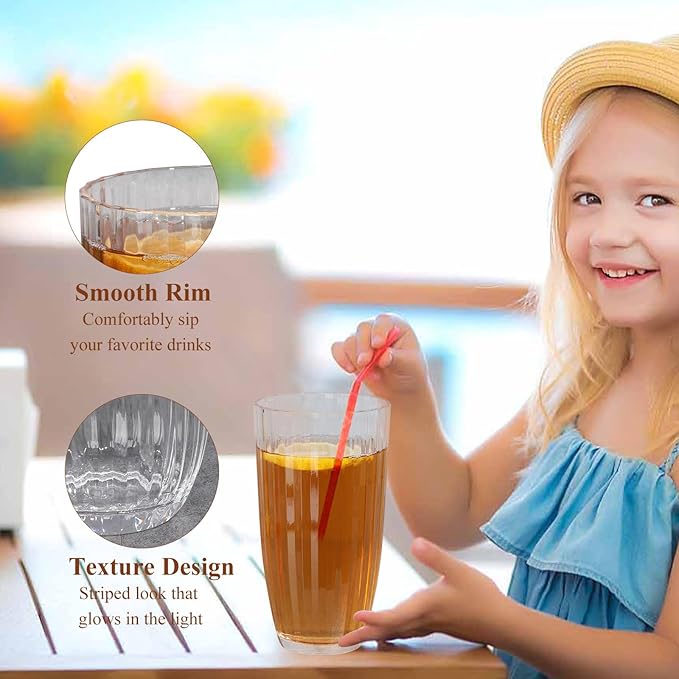 - Multi - Occasion Versatility:Each glass is ideal for all your favorite drinks—water, juices, iced coffee, cocktails, and more. Great for home dinners, parties, patio hangouts, or even as durable drinkware for dorms and RVs.