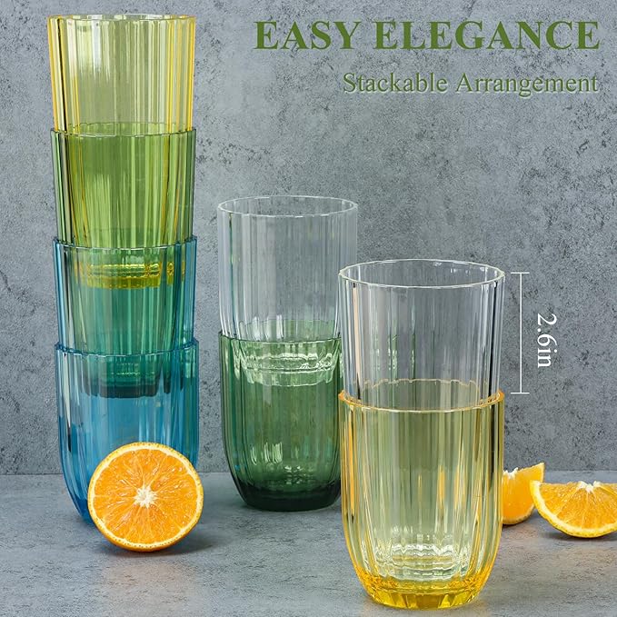 Acrylic Clear Highball Plastic Cups | Plastic Reusable Tumblers 15oz & 20oz (Set of 8) | Stackable | BPA-free Tumblers | Shatterproof | Top-rack Dishwasher Safe