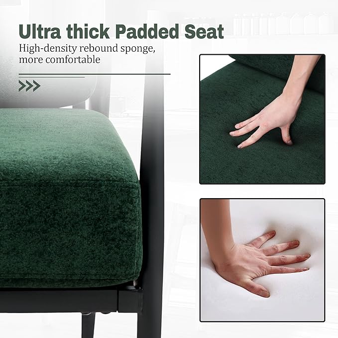 Modern Accent Chairs Set of 2 for Living Room Bedroom Mid Century Arm Chairs Upholstered Office Accent Chairs Comfy Waiting Room Chairs with Metal Frame, Green