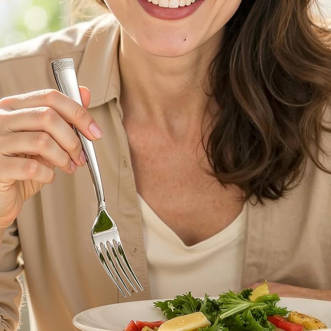 - BEADED HANDLE DESIGN: The flatware set has a beaded design at the end of the handle, which has slim lines that bring elegance. The beaded edges make the table setting more special.