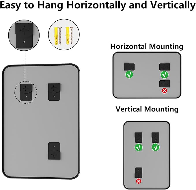 - No-Fuss Installation – Ready in Minutes: Comes with all hooks/hardware for vertical or horizontal hanging—no extra tools needed. Install this bathroom sink mirror before your coffee gets cold! Perfect for renters, DIYers, or anyone who hates complicated setups. Transform your space in minutes, whether above the sink, in the entry, or living room.