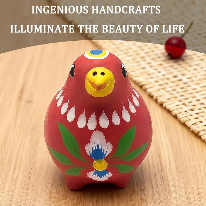 Decorative Clay Bird Figurines Hand-Painted Folk Art Design Collectible Smal Figurines Holiday Birthday Couples Friend Unique Gift Idea Decorative Home Art Table Bring Good Luck (Red)