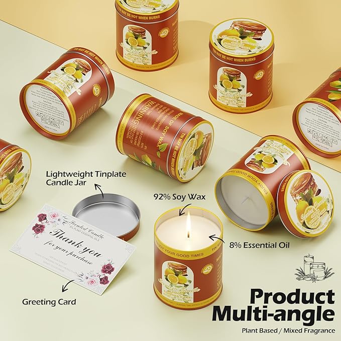 - 🛡️【Eco-Safe & User-Friendly】Pet-Friendly Design Pure soy wax and Cotton wicks ensure safe use around kids/pets. Easy-to-open tins with secure lids make storage hassle-free. A healthier choice for eco-conscious households!