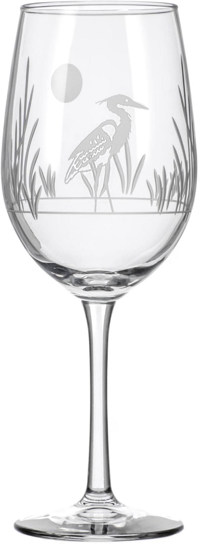Rolf Glass Heron White Wine Glass | 12oz Stemmed Wine Glass | Lead-Free and Diamond-Wheel Etched | Proudly Made in the USA | Coastal Glassware | Set of 2