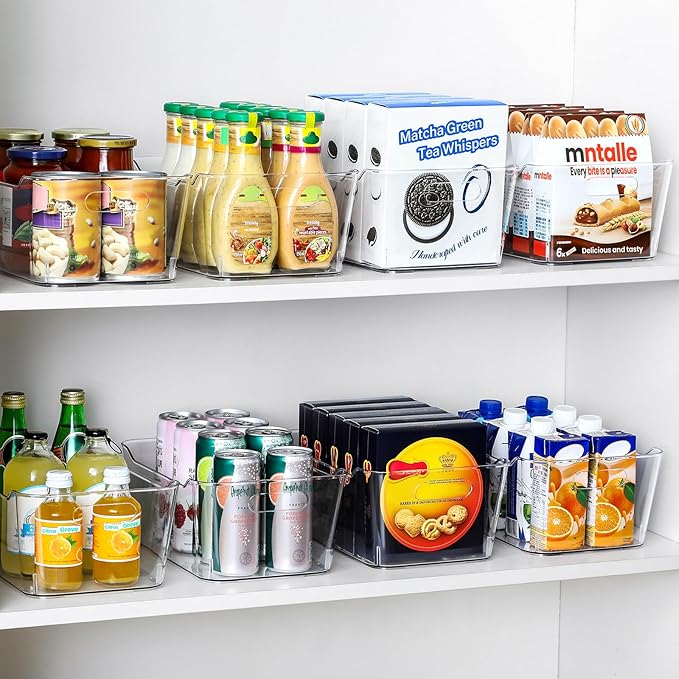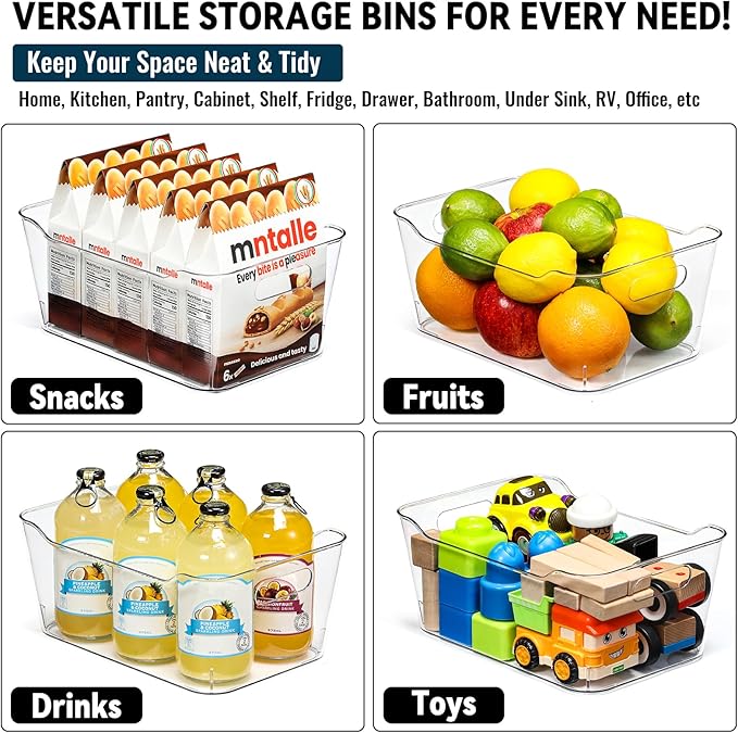 - Multiuse Bins for House Organizer - These bulk large clear bins are ideal home edit containers, for kitchen closet, refrigerator, pantry cabinet shelves, bathroom countertop, laundry room, bedroom, craft room, garage, office drawer desktop, RV and more. They will help create a clean and tidy storage space.