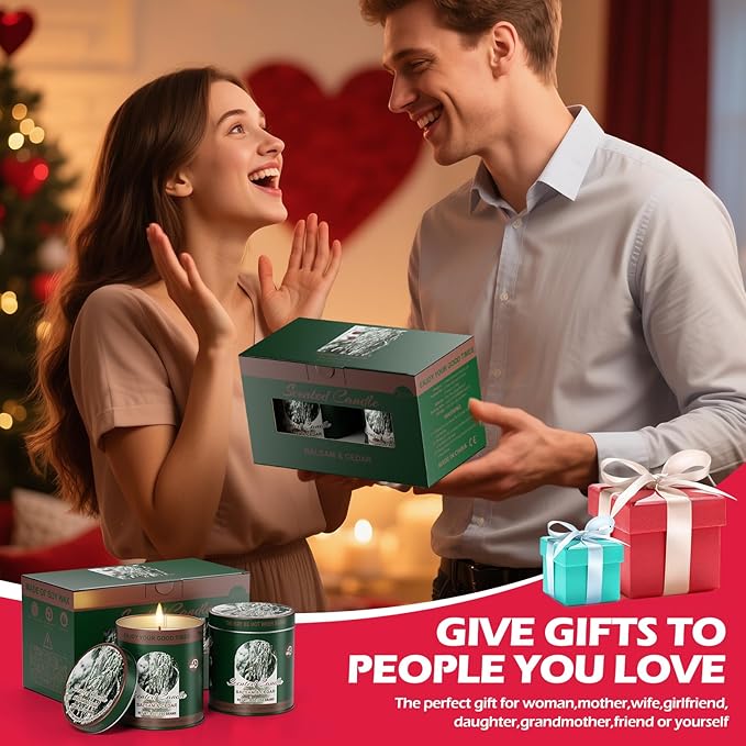 Balsam & Cedar Scented Candle Set | 2 Pack 510g 8% Essential Oils Long-Lasting 60H Burn | Pure Soy Wax Clean-Burning Smoke-Free | Aromatherapy Tin Jar Candles | Colorful Packaging Gift for Men&Women