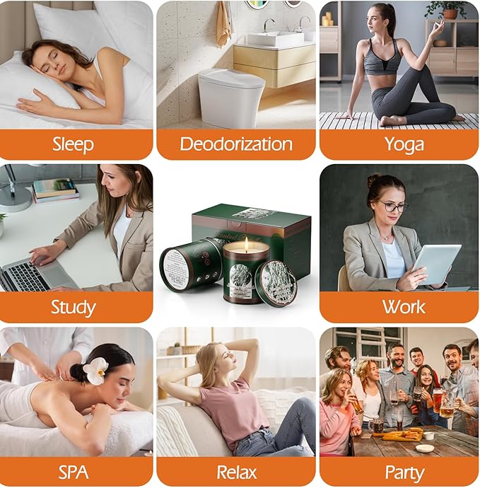- 【Multi-Scene Ambiance Creator】 Versatile use: Crisp fir boosts focus during work/study; warm cedar energizes parties (Party); spa-like serenity enhances bath time (SPA/Relax). Sealed tins preserve fragrance – also functions as a room diffuser when unlit.