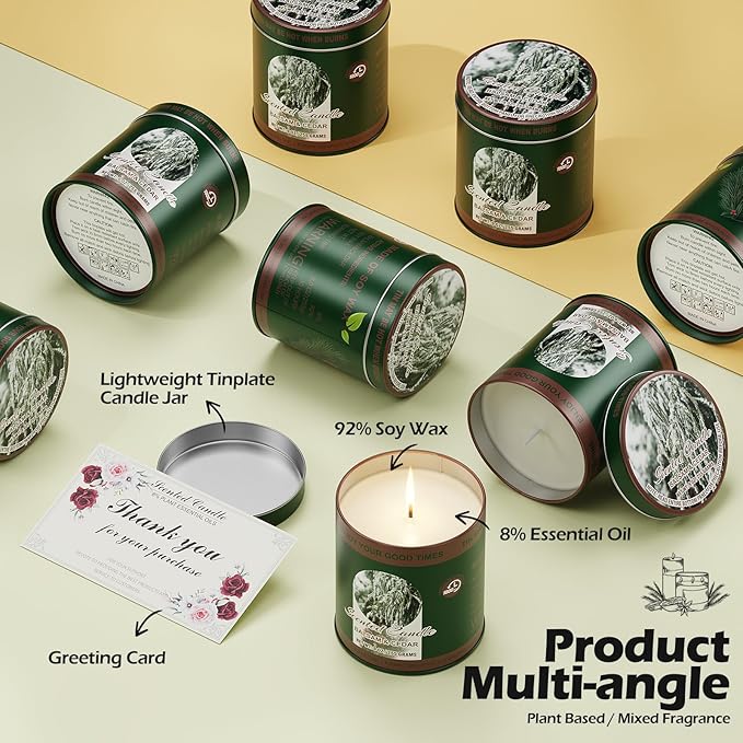 - 【Eco-Consistent & Hassle-Free Choice】 tures 9oz pure soy wax per tin (255g) that melts evenly without tunneling. 30% more eco-efficient than paraffin, emitting no harmful chemicals – safe for homes with pets/kids. Amazon Fulfillment with Damage Replacement Guarantee.