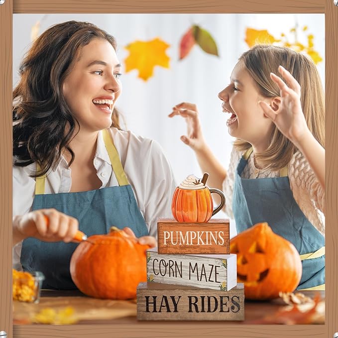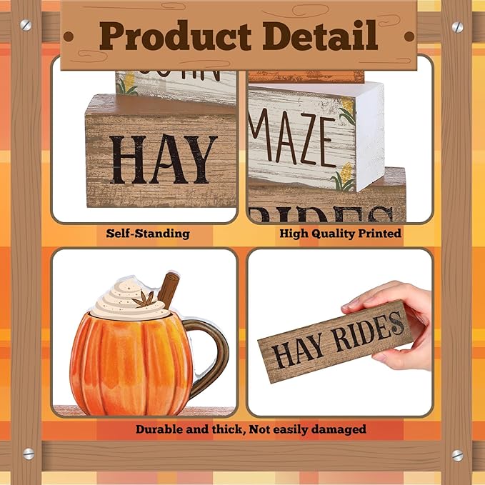 - Fall Tiered Tray Decorations: come with 4 wooden signs, 1 cup sign and 3 wood decoration books; Vibrant fall centerpieces are suitable for fall parties and home to welcome the fall harvest season