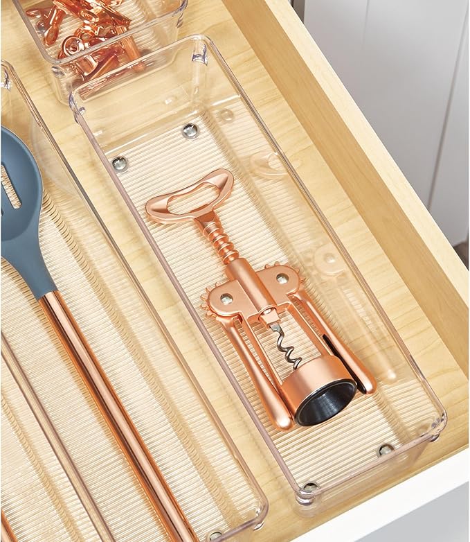 iDesign Plastic Drawer Organizer Bins - Storage for Kitchen, Bathroom, and Desk Drawers - Set of 6 - Clear
