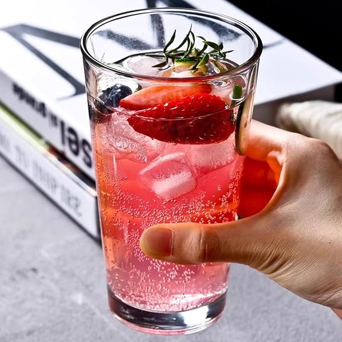 16.3 oz Drinking Glasses Set of 4, Glass Cups Set,Pint Glasses, Iced Coffee Cups,Highball Drinkware Glassware, Water Glasses for Cocktails,Beer,Wine,Juice