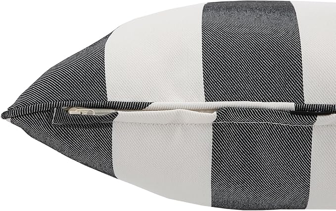 Outdoor Throw Pillow Covers 18x18 Inch, Set of 2, Cover Only! Waterproof Fade Resistant Decorative Cushion Sham Pillow Cases for Patio Furniture Chair Couch Sofa - Black Ivory Striped