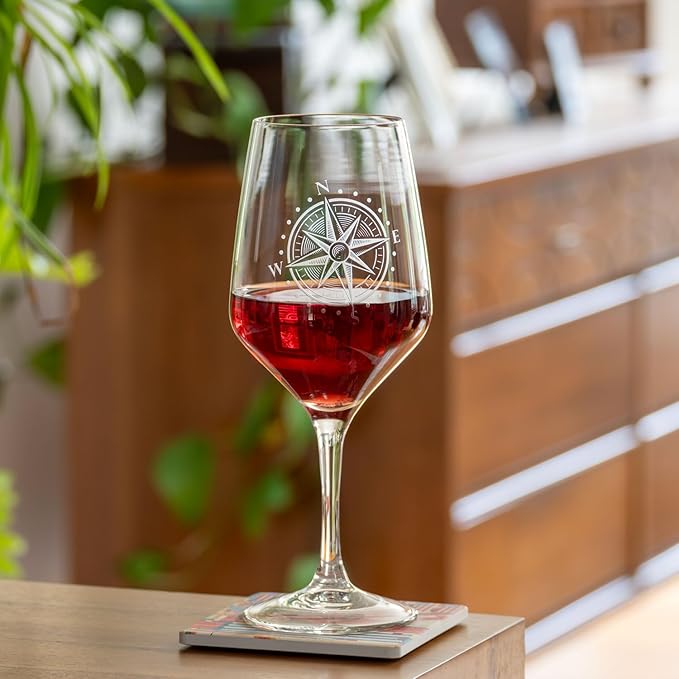 - TIMELESS NAUTICAL DESIGN: Each glass features a beautifully detailed compass rose, sand-etched with precision for a rich, frosted texture that won't fade or wash off.