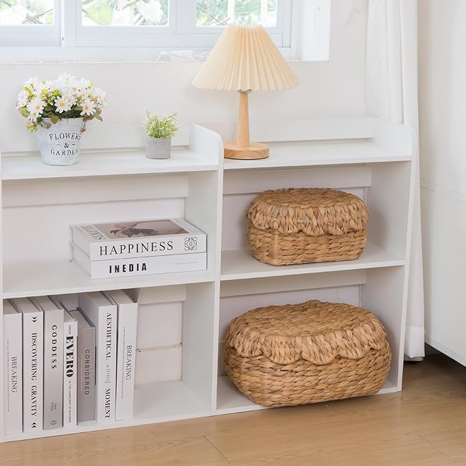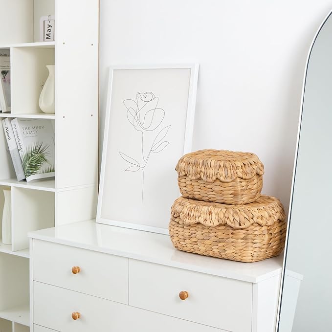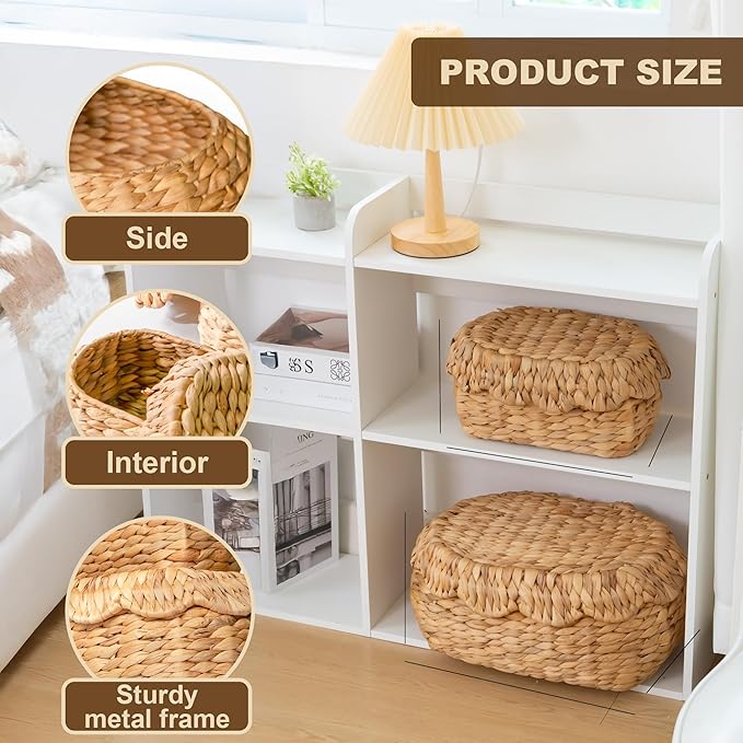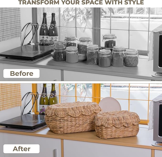 - πΏ Elegant Handwoven Design with Lids: Scalloped rims and snug-fitting lids provide stylish concealment for bathroom, kitchen, or living room essentials.