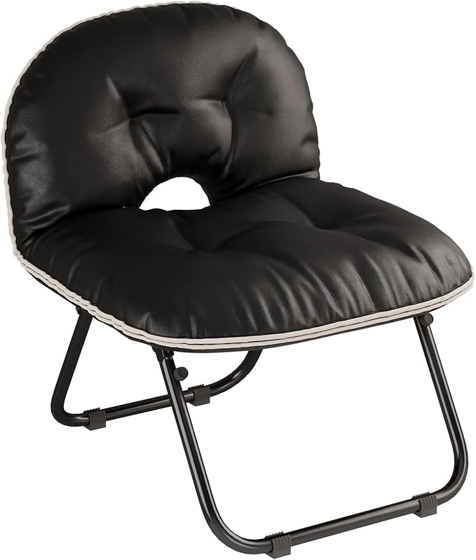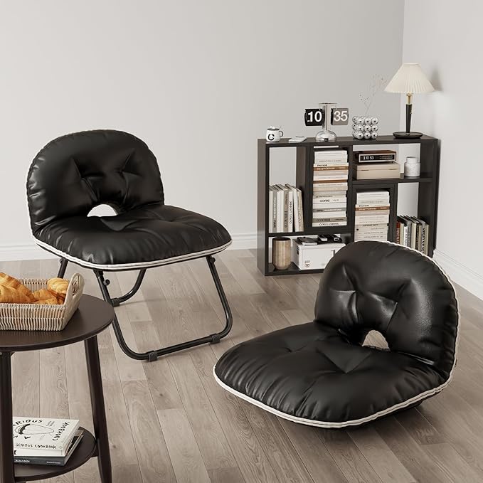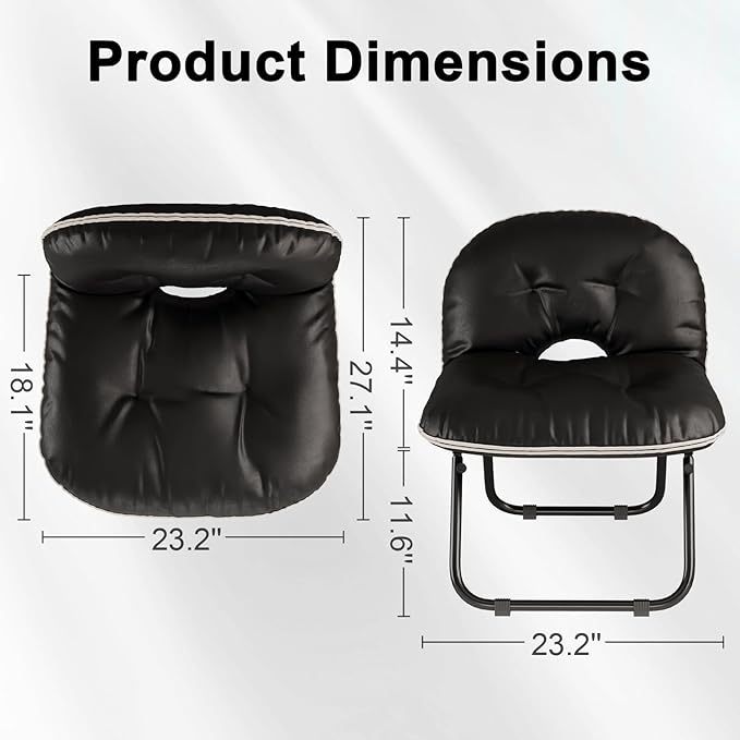 Folding Comfy Saucer Chair, Pu Leather Butterfly Chair, Moon Chair for Indoor & Outdoor, Small Reading Lounge Lazy Chair for Bedroom,Living Room, Dorm Rooms,Small Space (Black)