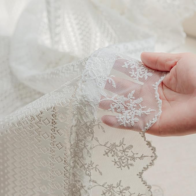 - Ready Made Sheer Lace Curtains: Crafted from premium floral lace with delicate scalloped edges, this set includes 2 panels (each 52" W × 54" L) for a total width of 104 inches—ideal for adding elegant light-filtering charm to your windows