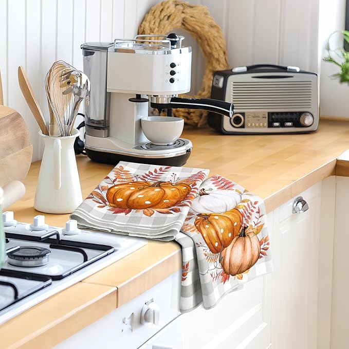 - Fall Kitchen Towels: Our fall dish towels set of 4 measure 18 x 26 inch; Fall hand towels are practical; Add farmhouse festival aura to the autumn kitchen using pumpkin kitchen towels